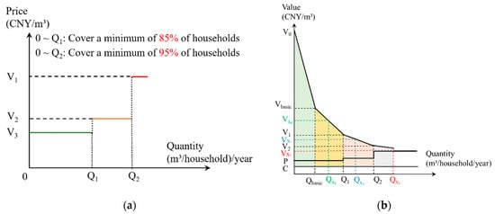 - Sun, J.; Shen, B.; Wang, Z. Different water price model based on basic demand and marginal cost. Yellow River 2015, 10, 50–53. (In Chinese) [Google Scholar]