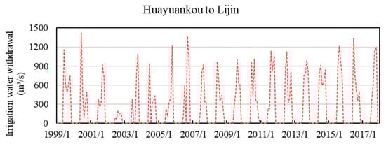 Monthly irrigation withdrawal from Huayuankou to Lijin station.