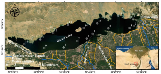Water quality indicators have received a lot of attention in recent years in water environment research because of the potential for toxic effects, persistence, and bioaccumulation issues that can harm aquatic ecosystems [3,4]. Agricultural activities, several industrial, and urbanization processes can pollute the environment and lead to water ecosystem contamination, endangering aquatic biota and humans [5,6]. Water quality is a crucial component of surface water management, thus evaluating surface water quality for aquatic environments in developing nations is a critical issue in recent times. One of Egypt’s most important inland-aquatic habitats is Qaroun Lake, which is a closed basin that serves as a primary reservoir for agricultural drainage water in Fayoum Province [6]. During the autumn and winter seasons, the lake is an important location for fishing, salt manufacture, tourism, and migrating birds [7]. Because of the greatest richness in biological life, archeological monuments, and geologic formations [8], both natural processes (rain, abrasion, soil erosion, etc.) and human inputs (urban, agricultural, and industrial activities) impose pressure on surface water quality in the lake [9,10]. Along the lake’s southern edge, there are several pollution sources, including agricultural and urban wastewater discharged by Fayoum Province, as well as fisheries [11,12].