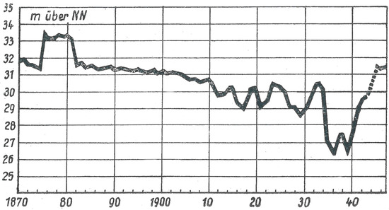 “The groundwater levels and economic circumstances presented here demonstrate a striking correlation over a long period. They clearly reveal groundwater levels to be a mirror image of the development and economic performance of Berlin” [73] (p. 65).