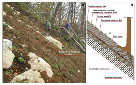 50]. In particular, the previous weather conditions directly influence the soil water content, which can be considered the final factor controlling the landslide initiation, as it directly affects the shear strength of the pyroclastic layer [