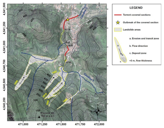 10]. In fact, these debris flows can occur both during extraordinary storms and less powerful storms in Campania. The extraordinary storm of 26 October 1954 that occurred along the Amalfi Coast (Lattari Mts. in