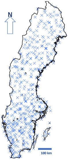 Part of the Swedish network of climate stations. These 588 stations were used for the development of the rainfall intensity maps 8a–d covering Sweden.