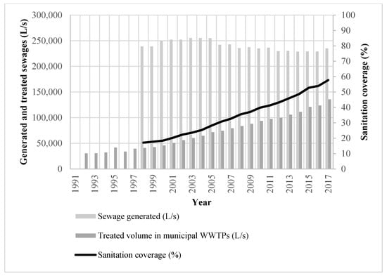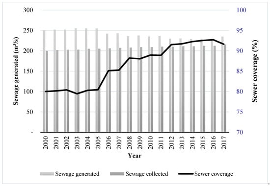 - There is still an important gap between the sewage generated by the population and the percentage of sewer coverage to collect this sewage [5].
