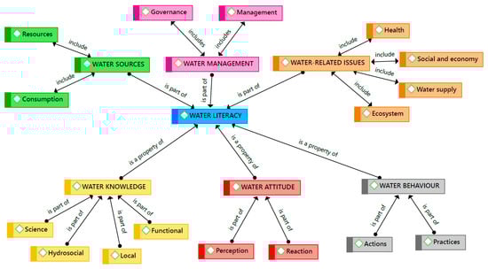 Different components of water literacy include water sources, water management, water related issues, water knowledge, water attitude and water behavior.