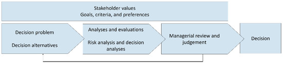 If a risk is too high, in accordance with existing objectives, risk criteria, available resources, and risk treatment options should be considered [3]. Deciding on the most appropriate treatment option involves taking various factors into consideration in a decision-making process. A suggestion of a basic structure for such a process is presented by Aven [7] (Figure 2). The point of departure is a decision problem and a set of decision alternatives. The results of the following risk analyses and decision analyses do not lead directly to a decision but provide decision support. The results are input to managerial review and judgement, which result in a decision or a revision of the decision alternatives. Boundary conditions for the whole decision-support process is set by stakeholder values, consisting of goals, criteria, and preferences including e.g., legal requirements. The structure of the presented framework was inspired by the decision-making process described by Aven [7].