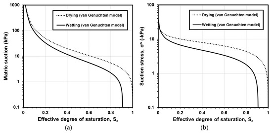 Consequently, by applying a closed-form equation for the suction stress characteristic curve (SSCC) proposed by Lu and Likos [22] and Lu et al. [31], the suction stress term σs in Equation (1) can also be expressed in terms of the effective degree of saturation as shown in Equation (5):