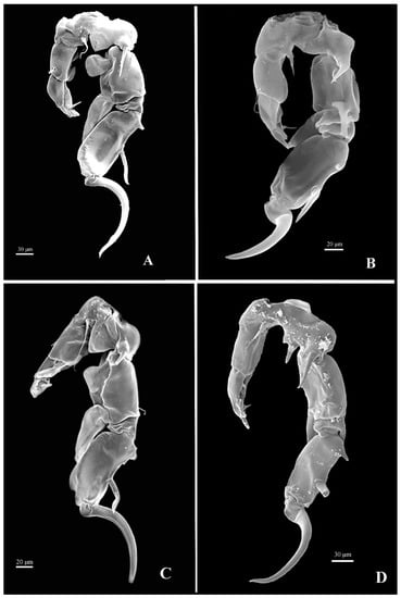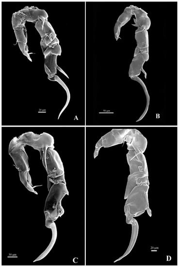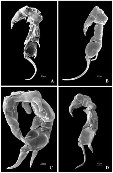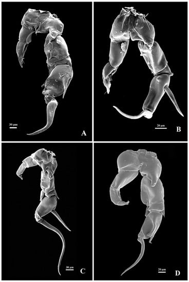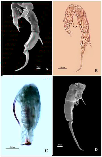 - Kiefer, F. Zwei neue Ruderfusskrebse (Crustacea, Copepoda) aus Malaysia. Beitr. Naturk. Forsch. Südwestdeutschl. 1974, 33, 219–222. [Google Scholar]