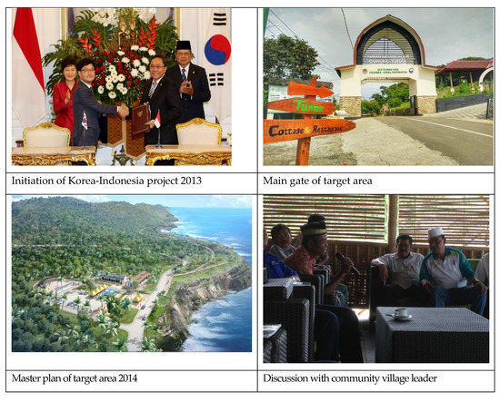 Therefore, in 2013, the Indonesian minister of forestry asked Korea to share its recreation forest model as official development assistance (ODA). The international cooperation was planned to promote ecotourism practices in Indonesia’s rich biodiversity forests, based on Korea’s modern recreation management experiences. Additionally, it was designed to revitalize the regional economy by strengthening forest recreation and ecotourism in conservation areas in Indonesia. Gunung Tunak Nature Recreation Park (TWA Gunung Tunak) on Lombok Island was chosen because it has abundant natural resources, unique biota both on land and at sea, and high biodiversity [5,6,7,8]. Moreover, it aimed to achieve economic development of the local community by focusing on ecotourism based on the landscapes of the surrounding coasts.