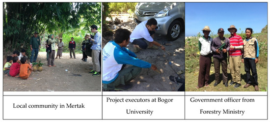As shown in Figure 3, interviews were carried out with local inhabitants, project executors, government officials at Indonesia’s MoEF, and those from the Korea Forest Service. As it was the starting year of the international cooperation project, the four groups shared many common goals and expectations, especially regarding community development, such as a revenue increase and improvements to the living environment, through the project (Table 3). The interviewees were the same individuals as those in 2020.