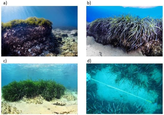 - Marbà, N.; Díaz-Almela, E.; Duarte, C.M. Mediterranean Seagrass (Posidonia oceanica) loss between 1842 and 2009. Biol. Conserv. 2014, 176, 183–190. [Google Scholar] [CrossRef]