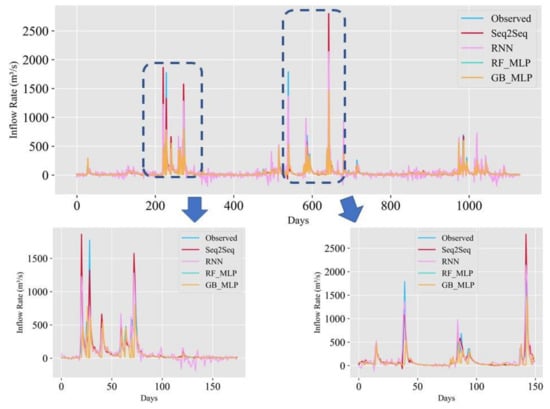 Figure 10 suggests that the proposed model and baseline models tend to follow the trend. However, RNN tends to frequently underestimate as if there are days with a negative inflow rate.