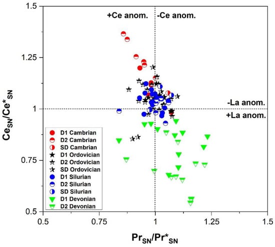- Shields, G.; Stille, P. Diagenetic constraints on the use of cerium anomalies as paleoseawater redox proxies: An isotopic and REE study of Cambrian phosphorites. Chem. Geol. 2001, 175, 29–48. [Google Scholar] [CrossRef]