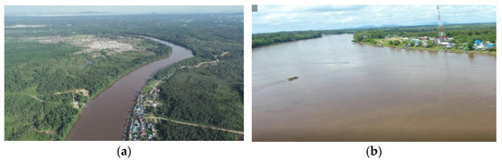 Condition of Kapuas River. (a) River morphology; (b) view across the river.