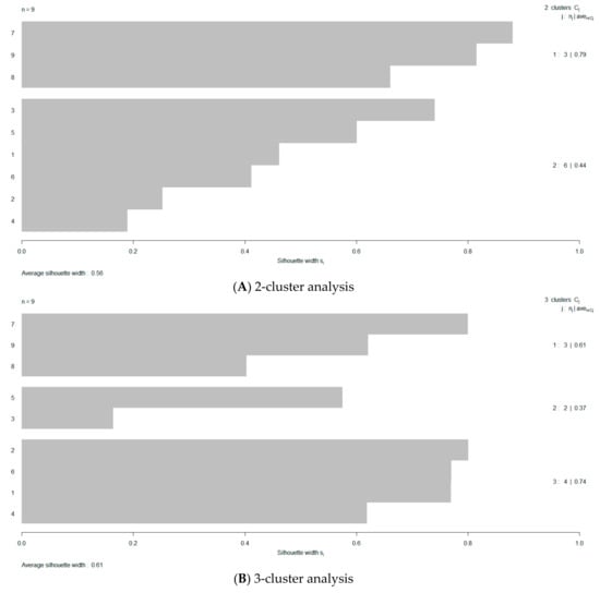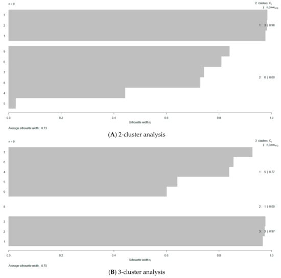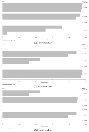 - Rousseeuw, P.J. Silhouettes: A Graphical Aid to the Interpretation and Validation of Cluster Analysis. Comput. Appl. Math. 1987, 20, 53–65. [Google Scholar] [CrossRef] [Green Version]