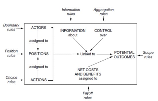 - Ostrom, E. Background on the institutional analysis and development framework. Policy Stud. J. 2011, 39, 7–27. [Google Scholar] [CrossRef]