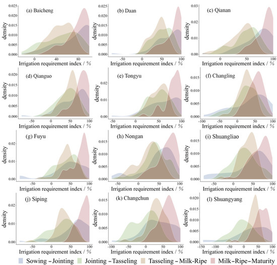 Figure 8. Density distribution of the IRI in maize at different growth period.