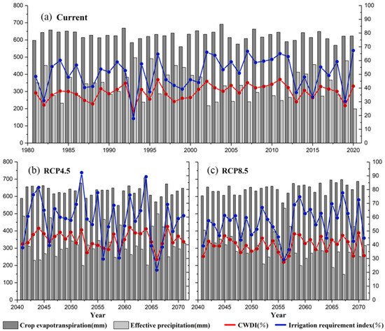 55. Zhang, Y.; Wang, Y.; Niu, H. Effects of temperature, precipitation and carbon dioxide concentrations on the requirements for crop irrigation water in China under future climate scenarios. Sci. Total Environ. 2019, 656, 373–387. [Google Scholar] [CrossRef]