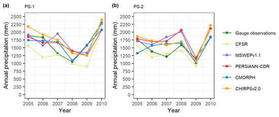 Annual precipitation in: (a) PS-1 station and (b) PS-2 station.