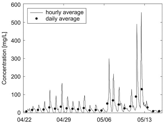 Concentration estimated from 2012 acoustic data at 2.24 m from the bed at a Nelson River site located 50 km downstream of the Limestone Generating Station. Adapted from [], with authors’ permission.