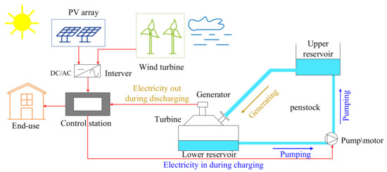 - Xu, B.B.; Chen, D.Y.; Venkateshkumar, M.; Xiao, Y.; Yue, Y.; Xing, Y.Q.; Li, P.Q. Modeling a pumped storage hydropower integrated to a hybrid power system with solar-wind power and its stability analysis. Appl. Energy 2019, 248, 446–462. [Google Scholar] [CrossRef]