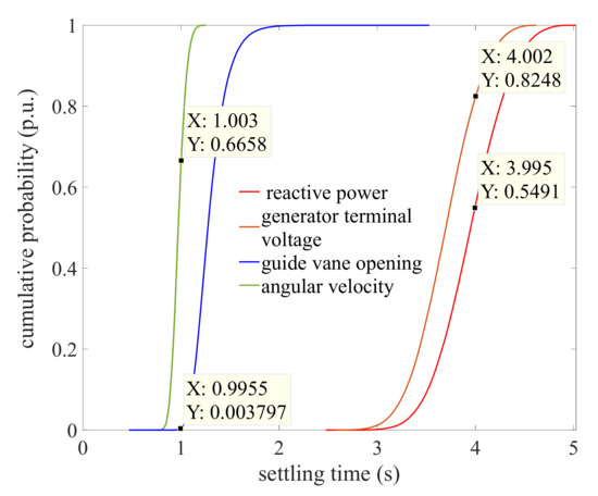 Motivated by the above analyses, there are three advantages which make our study attractive compared with the prior work. First, a mathematical model with a solar−wind−hydro hybrid power generation system is adopted to investigate the regulation reliability of PSPP. Second, the uncertainties and limitations of the model parameters are investigated to quantify the effect of regulation reliability. Third, five regulation indexes, i.e., rise time, settling time, peak value, peak time and overshoot of the reactive power, generator terminal voltage, guide vane opening and angular velocity, are extracted to evaluate the PSSP’s regulation quality. Finally, the failure probabilities of power supply for the PSPP are calculated.