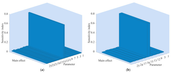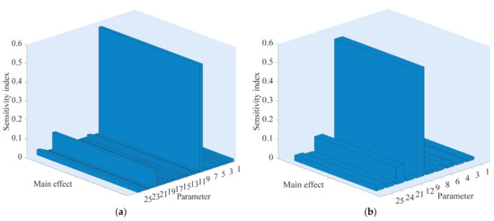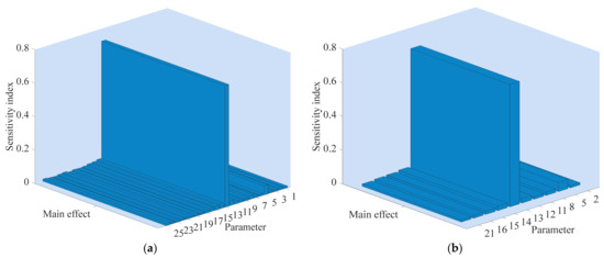 The sensitivity analysis method is a valuable tool for building and using numerical simulation models [35]. It is used to study the influence of parameters uncertainty on the system output by setting the variation of model parameters in the corresponding design space [36]. Through sensitivity analysis, the model correction can set the parameters with low sensitivity to fixed values, and only calibrate the parameters that have great influence on the output variables, thus effectively simplifying the model, and improving the calibration accuracy of the model and saving time [37]. The first historical approach to sensitivity analysis is known as the local sensitivity where the effect of small input disturbance occurred around nominal values on the model output is studied [38]. To overcome the limitations of local methods (linearity and local variations), global sensitivity analysis considering the whole variation range of the inputs was developed in the late 1980s [35]. The extended Fourier amplitude sensitivity test (EFAST) is one of the most commonly used global sensitivity analysis methods, since it studies the influence of each parameter and the interaction of parameters on system output when multiple parameters change simultaneously [39]. Please see Xu et al., for detailed information about EFAST [40].