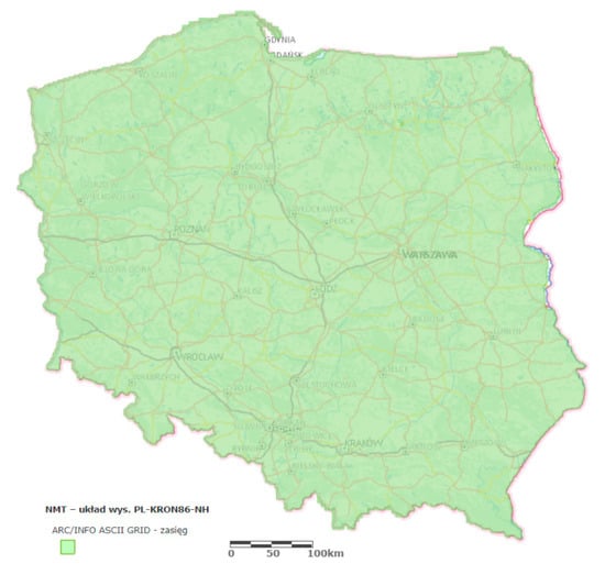 - Numeryczny Model Terenu. Główny Urząd Geodezji i Kartografii. Available online: http://www.gugik.gov.pl/pzgik/zamow-dane/numeryczny-model-terenu (accessed on 29 November 2020).