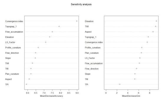 Furthermore, previous comparable research paid little attention to the sensitivity study of thematic layers. After constructing hybrid models, thematic layers in this analysis were subjected to sensitivity tests. In order to increase the accuracy of the model’s predictions, the most influential thematic layers were calculated by using multiple machine learning-based sensitivity analyses. This methodology is used to reduce uncertainties in other RS/GIS-based models, such as soil erosion susceptibility [75,76], landslide vulnerability [77], and soil property estimation [15,78]. The RF based sensitivity analyses have been used in the research study to classify the significant thematic layers produced by the model. Furthermore, both parametric and non-parametric ROC curves were used to evaluate the model’s performance. Very few studies have applied both the parametric and non-parametric ROC curves for validation. As a result, this research study will have a major impact on the sustainable management of groundwater.