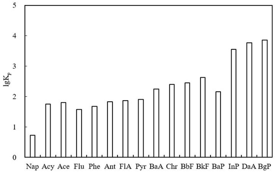 It can be obtained through laboratory experiments, but it cannot truly reflect the field environment. Adsorption experiments in laboratory and field showed that organic matter was beneficial to the adsorption of PAHs in sediments or particulate matter [18,19]. Theoretically, it is assumed that the adsorption of PAH compounds is only affected by organic carbon so it can be expressed in the form of normalized organic carbon.