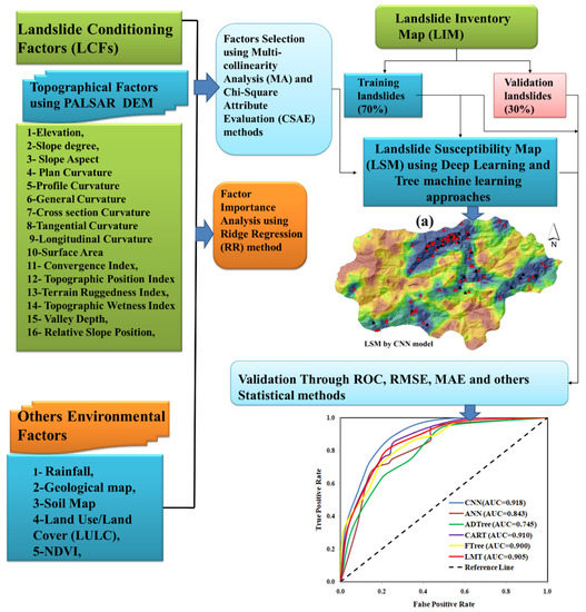 - LSMs were then generated by using DL (CNN) and hybrid tree-based ML approach (ANN, ADtree, CART, FTree and LMT) models, and their results were compared.