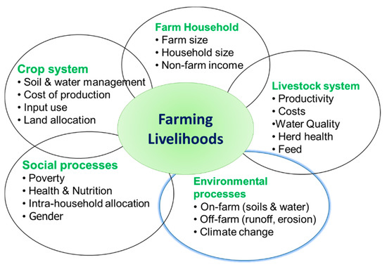 19]. The links between the agricultural production system and farming livelihood are described in