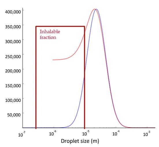3.1. Model Prediction for the Effect of Evaporation on the Number of Inhalable Droplets