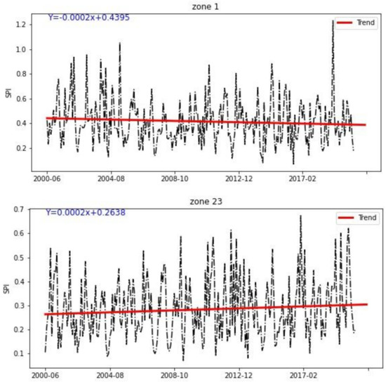Trend of drought for Zone 1 and Zone 23 in the MKB.