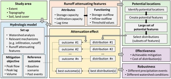 Proposed framework for studying the effect of distributed runoff attenuating features.