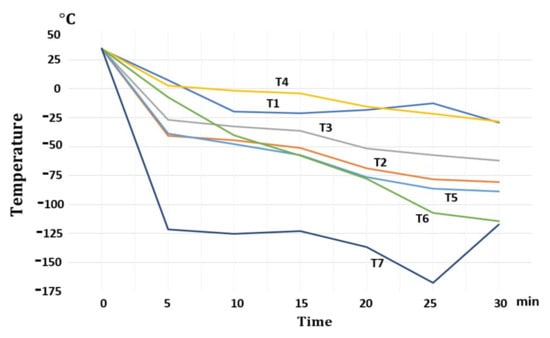 Temperature (°C)Freezing Time (min.)Liquid Nitrogen Using (kg)