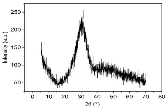 The linear fitting of adsorption data by the Langmuir, Freundlich and Dubinin–Radushkevich models according to Equations (3)–(5), respectively, are exhibited in Figure 7 and the fitting results are listed in Table 9. It can be seen that the correlation coefficients (R2) for the Langmuir model is 0.998, much higher than those for the Freundlich (0.760) and Dubinin–Radushkevich (0.741) models, indicating that the Langmuir model is more appropriate for describing the isothermal adsorption process when compared to the other two models. The theoretical maximum adsorption capacity (29.33 mg·g−1) calculated on the basis of the Langmuir model is very close to the measured value (31.05 mg·g−1), revealing that a monolayer adsorption of lead ions takes place homogeneously on the uniform and energetically identical active sites on the surface of slag adsorbent [2,45]. Another intrinsic parameter RL, defined in Equation (7), is used to evaluate the Langmuir adsorption [46]: