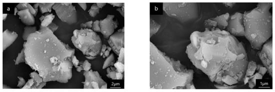 The SEM images in Figure 5 show that the slag consists of irregularly shaped particles with a rough surface and a size ranging from several microns to more than 20 microns.