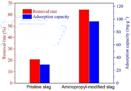 The comparison of the adsorption performance between the pristine and aminopropyl-modified slag.