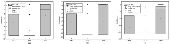 | F | ISSA | SSA | PSO | GWO | WOA | SCA | MVO | |||||||