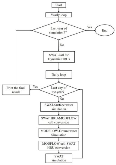 2.3. SWAT-MODFLOW Model Coupled with Dynamic HRUs