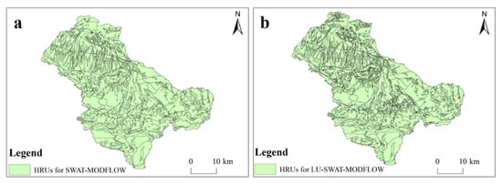 | HRU | SWAT-MODFLOW | LU-SWAT-MODFLOW | ||||||||||