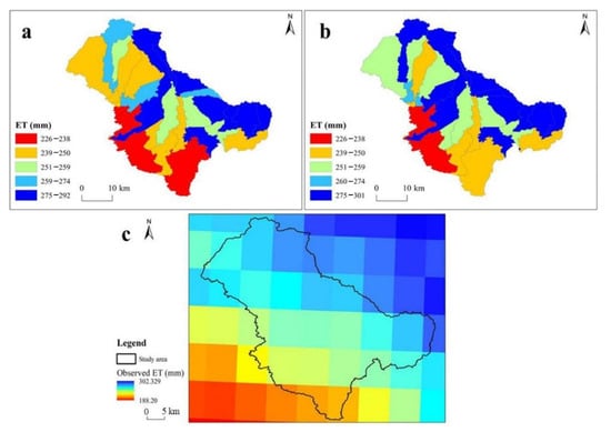 - Immerzeel, W.W.; Droogers, P. Calibration of a distributed hydrological model based on satellite evapotranspiration. J. Hydrol. 2008, 349, 411–424. [Google Scholar] [CrossRef]