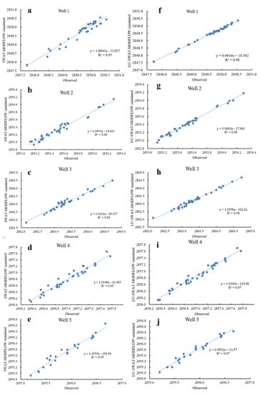 3.2.4. Comparison of the Simulation Results for Groundwater Table Depth