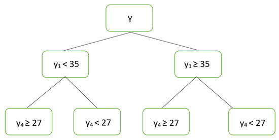 Tree-structured regression methods form a hierarchical structure with the input data being split at the nodes creating smaller subsets till maximum homogeneity is obtained. For example, Y can first be split into and engender two nodes with greater homogeneity than the first node. These two nodes can further be split into {Y | y4 ≥ 27} and {Y | y4 < 27} as shown in Figure 3.