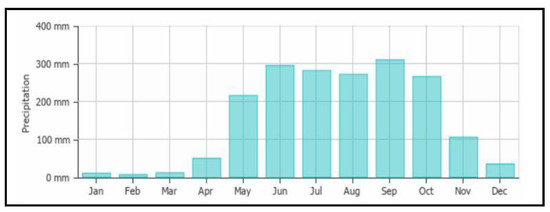 Located in the south of Vietnam, HCMC (Figure 1) has been recognized as an extraordinarily economic and financial center in Vietnam, and also a vibrant metropolis with the rapid industrialization, urbanization, and agricultural intensification. The climate in HCMC is identified as the tropical monsoon regime with specificity of two distinguished seasons, rainy and dry. In the dry season from November to April, the city obtains a low rainfall (approximately of 10–15% of the total annual rainfall), high evaporation, and high temperature (around 29–30 °C). On the other hand, the average rainfall during the rainy season from May to October generally accounts for approximately 85–90% of the total annual rainfall, which has approximately varied from 1000 to 1600 mm in recent years as shown in Figure 2.