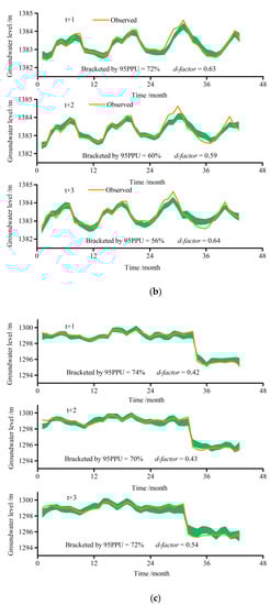 In this section, the performance of the proposed hybrid VBELM model was discussed to forecast the 1-, 2- and 3-month ahead groundwater level for three wells. The VELM model without feature selection technique and the single ELM model were also assessed for comparison. It should be noted that it is during the testing phase that the performance in the prediction of groundwater level was demonstrated and compared of these models. In addition, the uncertainty assessment was further adopted to verify the simulation results of the proposed VBELM model.