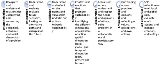 Therefore, in this training for early childhood education teachers, a training that is multidimensional and that implies knowing, understanding, acting, and being must be advocated for [68]—training endorsed by the development of key competencies related to sustainability, which highlight the integral perspective that education for sustainability implies [65,68,96,98] (Figure 4).