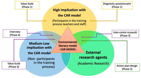 Research on EfS has a long tradition of working with Collaborative Action Research (CAR) methodologies due to the transforming peculiarity and the intrinsic demands for change promoted by environmental education programs linked to formal education [101,102,103,104] or in non-school intervention contexts of community intervention and improvement of the sustainability conditions of the territory [101,102,103,104,105,106].