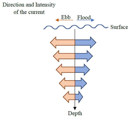 In conclusion, the circulation in the Sado estuary occurs through the two navigation channels, being the South channel the main route for water exchange. The intensity of the current decreased in depth, with more intense currents during ebb, and the direction was similar along the water column, changing with the tidal regime (see the schematic representation in Figure 7). At the mouth of the estuary, the circulation patterns appear to be more complex.